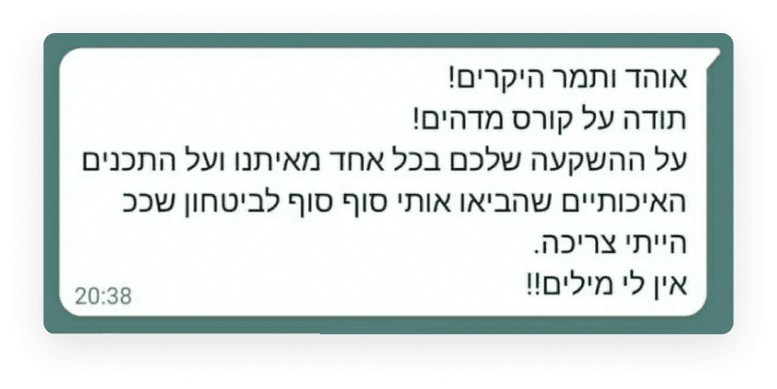 + התכנים נשארים אצלכם לתקופה של שנתיים כך שאפשר להשלים מתי שבא לכם במקרה שפספסתם + הקורס נוח ונגיש מכל מקום, בכל מכשיר ובכל זמן. + זה הנושא הכי חשוב שיש, ולכן אין מצב לתת לזה להתפספס. פשוט לקבוע בלו”ז ולהחליט לעשות את זה עבור הילדים שלך.